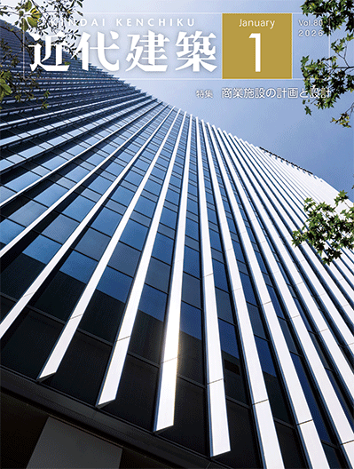 月刊近代建築 2026年1月号 掲載物件 ミタマチテラス/ミロク日章工場/名古屋伏見Kフロンティア/生駒組新社屋/東京エレクトロン九州 プロセス開発棟/Hi-gs日本橋/スイテ新横浜/スイテ新御徒町/BIZCORE飯田橋/障害者支援施設 西室苑/大阪市 中央こども相談センター/SANICHIコモンズ/栃木県林業大学校/知北斎場 特集 商業施設の計画と設計 三井ショッピングパーク ららぽーとTOKYO-BAY 北館建替計画T期/三井アウトレットパーク 岡崎/イオンモール須坂/イオンモール仙台上杉/クロサワビル ティファニー銀座/深川ギャザリア LEGARE棟/KOMAZAWA Park Quarter/新潟駅高架下開発 CoCoLo新潟/りそなコエドテラス/アウトドアヴィレッジ三春/玉川島屋S.C.南館アトリウムガーデン リニューアル/道の駅 あいの土山/横浜ティンバーワーフ/AOI CELESTIE COFFEE ROASTERY/ヤタロー地産地消工場店/栃木トヨタ 不動前店/ユナイテッドトヨタ熊本 R325店